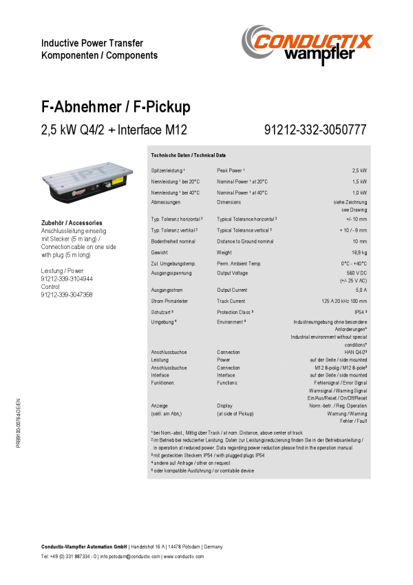 F-Abnehmer / F-Pickup 2,5 kW PDF | 260.38 KBLanguage: EnglishDocument type: Brochures Share Share this page on LinkedIn Share this page on Facebook Share this page on WeChat Share this page on X Share this page via mail Copy this page to clipboard Download