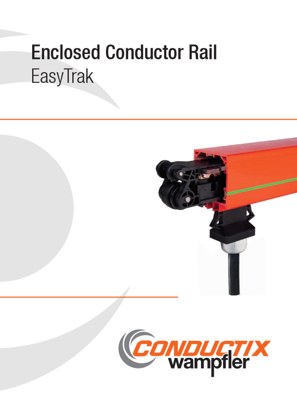 EasyTrak 是一种封闭式滑触线,集成4极/5极导体的复合绝缘外壳封闭式导电轨系统,主要适用于额定电流120A以下的桥式起重机(EOT)应用。其绝缘型材兼具集电滑车导向功能,可补偿较大装配偏差并实现快速部署。