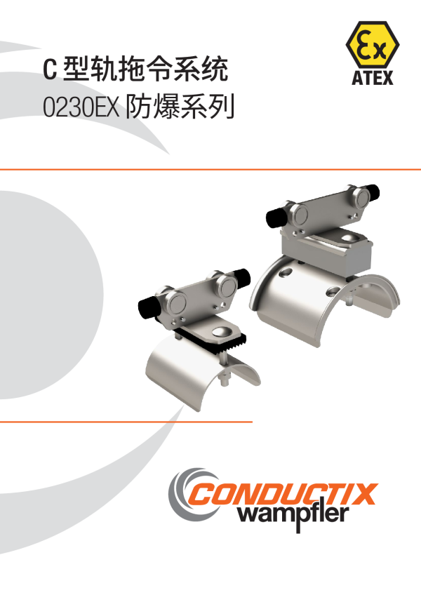 用于承载轻型电缆组件套装的C型轨电缆滑车0230系列。小型C型轨尺寸 30x32 mm。主要用于线性安装,弯曲轨道在一定程度上是可行的。
